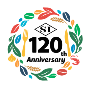 多くの社員の想いと、「世界の食の幸せに貢献します」というミッションをデザインに込めたロゴとともに、節目の年を迎えております。